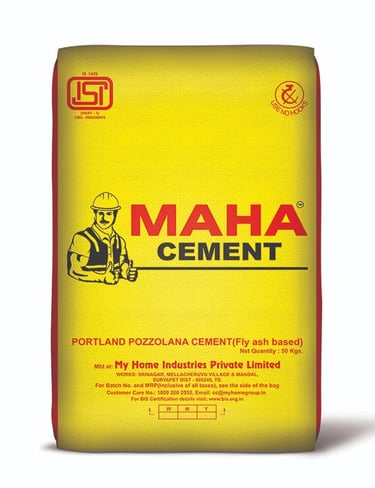 MAHA PPC Produced by blending OPC with gypsum and high quality fly ash as per BIS specification IS: 1489 – 2015. Characterised by high compressive strength, workability & durability. Recommended in projects where heat of hydration is required to be low.